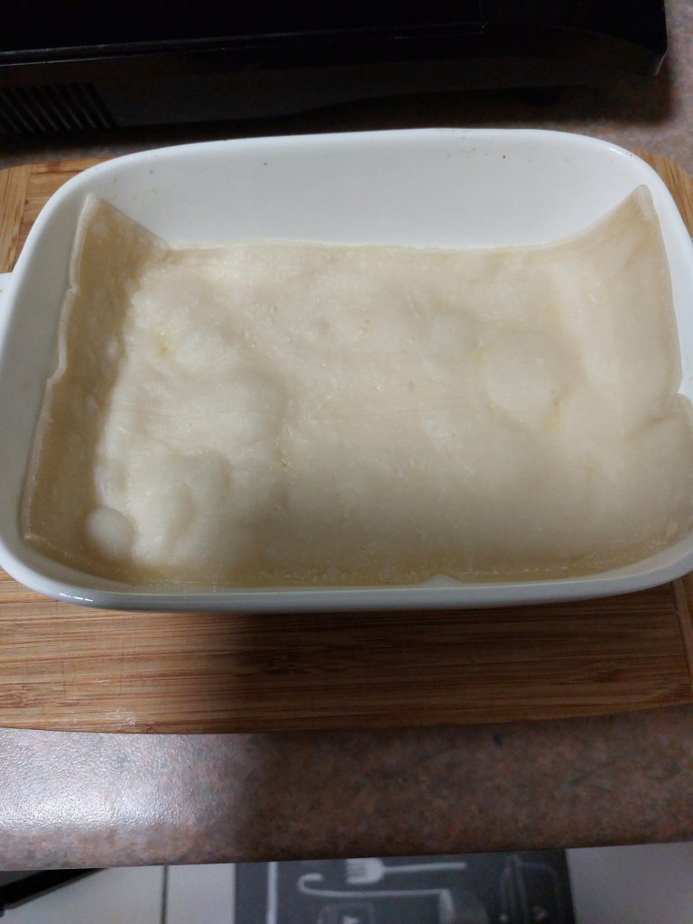 Yesterday I cooked up rice and mixed vegetables enough for several serves. Today I decided to use the leftovers and make a pie.