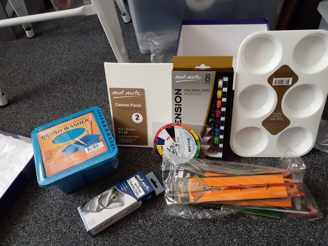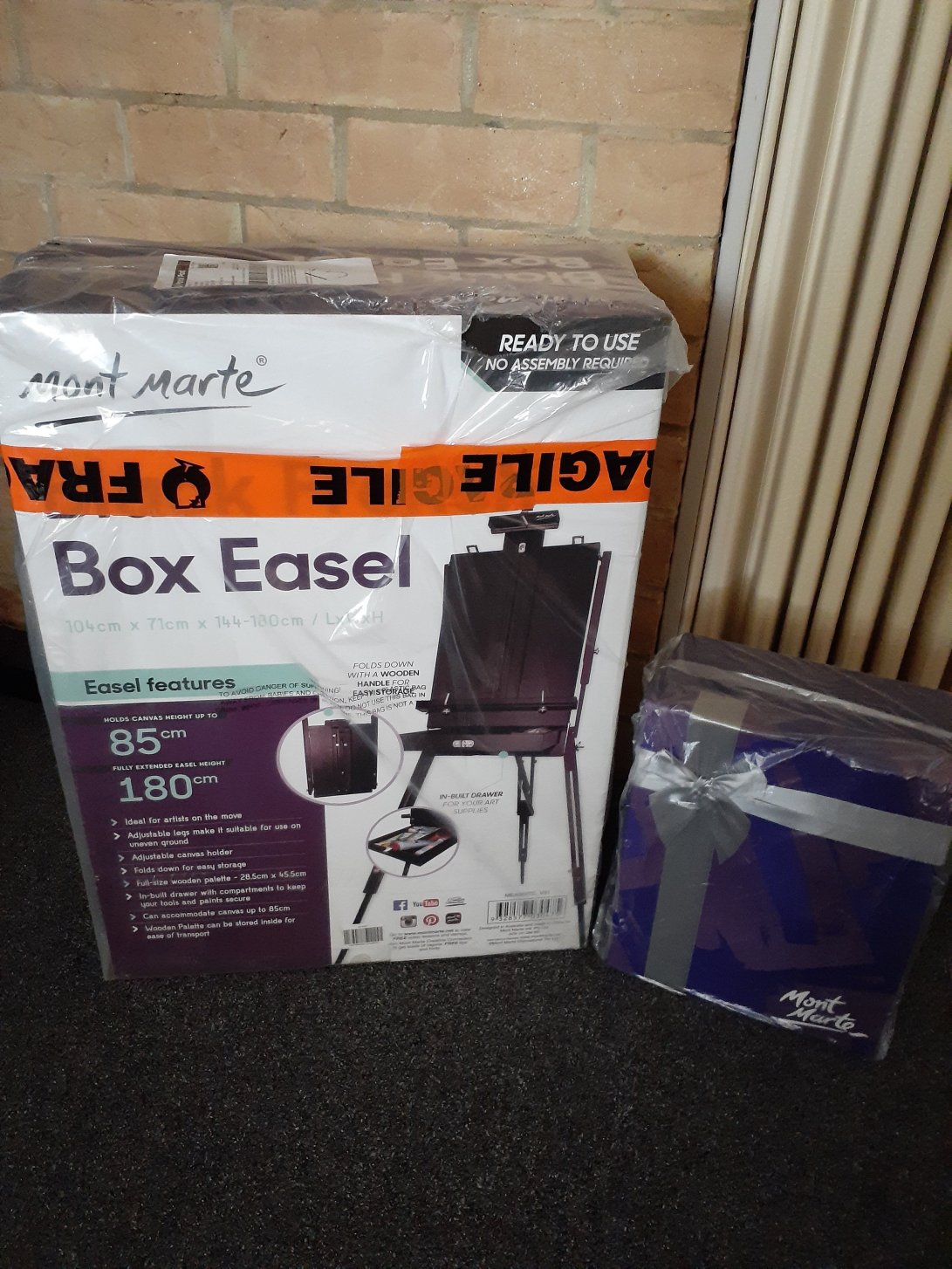 Hi Caz I ordered the easel online from a company that I had previously purchased art gear. I did know about the freebies but didn’t know what would be in the box. I was pleasantly surprised when I opened it to find all items good quality and very useful. Finding a home for it might be a challenge, I will make sure I have fun