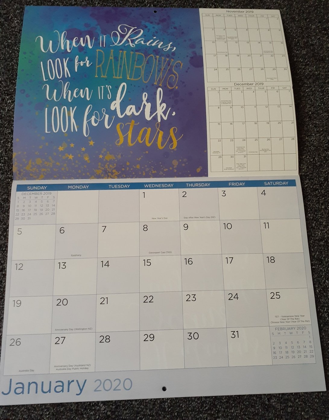 Today I purchased a 2020 Calender. I was attracted to the beautiful thoughts for the start of each month.