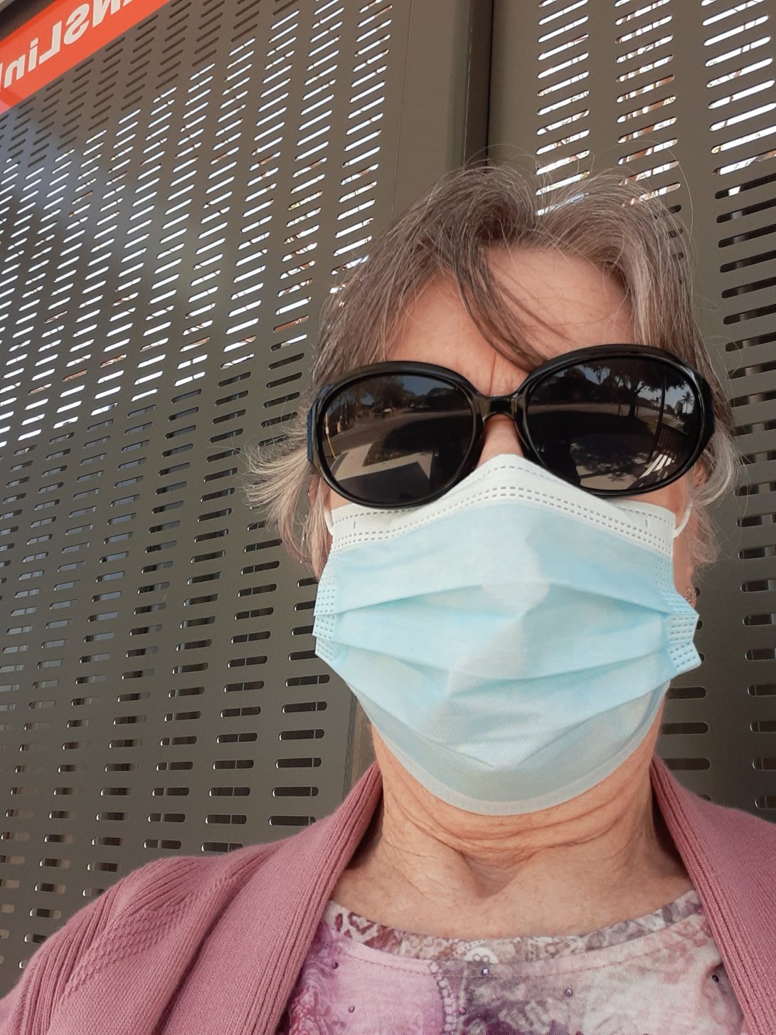 Waiting at the bus stop in preparation for a day out. Another cluster of Covid-19 in Brisbane, recommended to wear a mask on the bus.