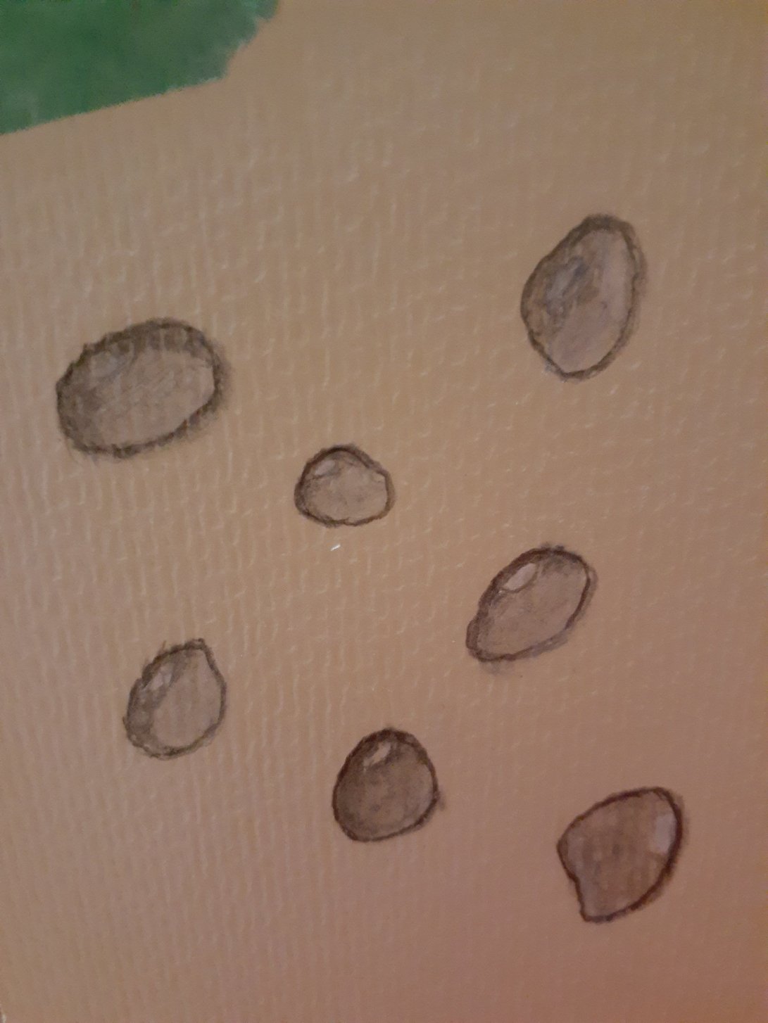 My first attempt at drawing water droplets. I think they resemble little stones. It’s after 11pm so I had better try and get some sleep. Tomorrow I will try again….I will get this right π€£