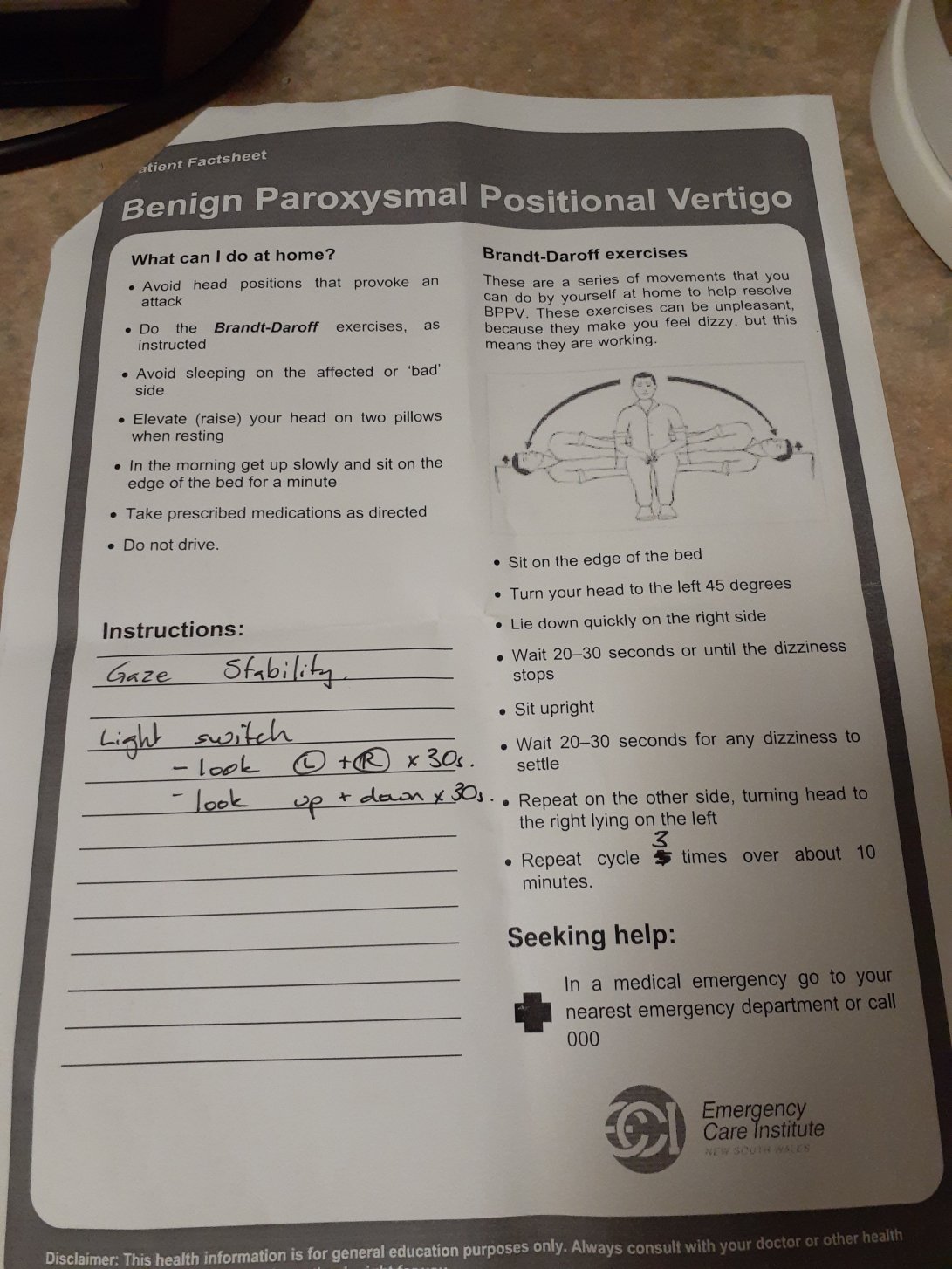 I had to see the physiotherapist for ongoing treatment of arthritis in hip and knee. I mentioned about the vertigo so we decided to concentrate on that today.