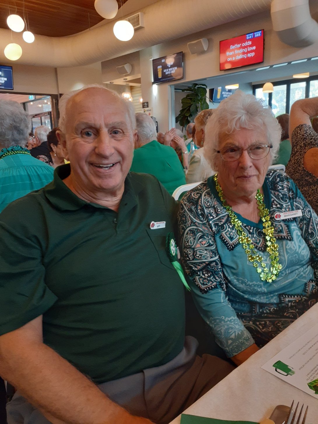 Our venue was Coolum Beach Hotel. The rain didn’t stop for anyone, we managed to get inside without getting drenched. βπ.There were two hundred of us for the function, 4 tour buses and also a charter bus.The hotel was decorated up for St Patrick’s day. I managed to sit at the of a table, better than being squashed in, and of course no social distancing.
