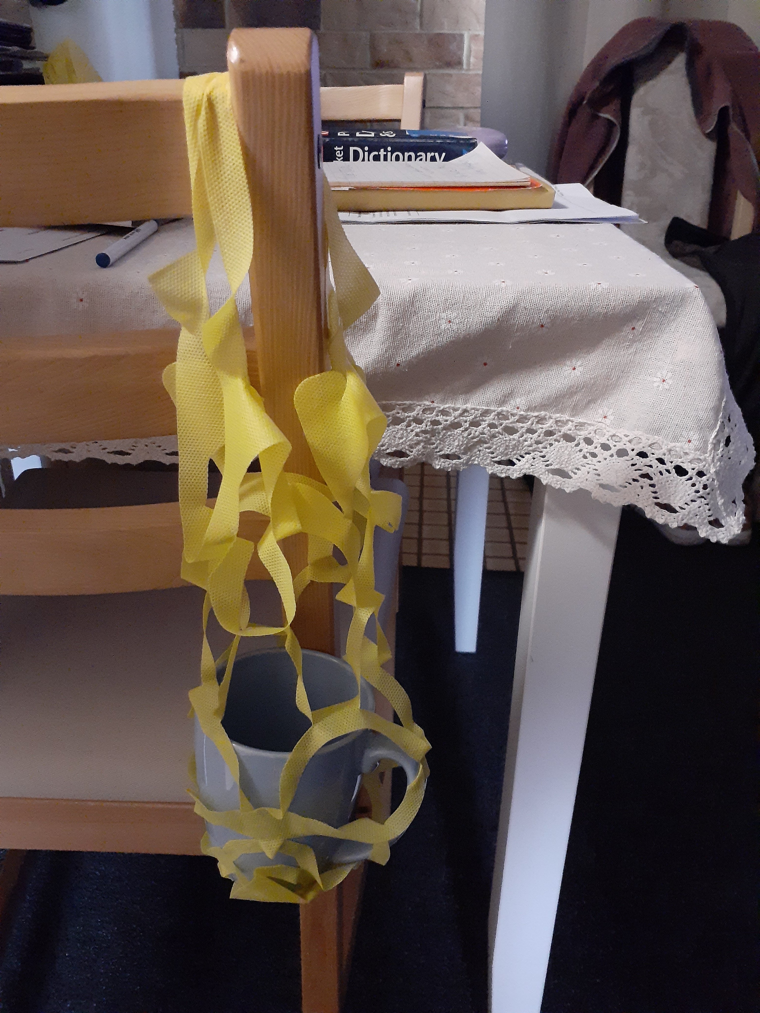 During my recent train travel I was given this handy string like bag to transport my takeaway coffee back to my seat. It actually fits about 3 cups stacked up.