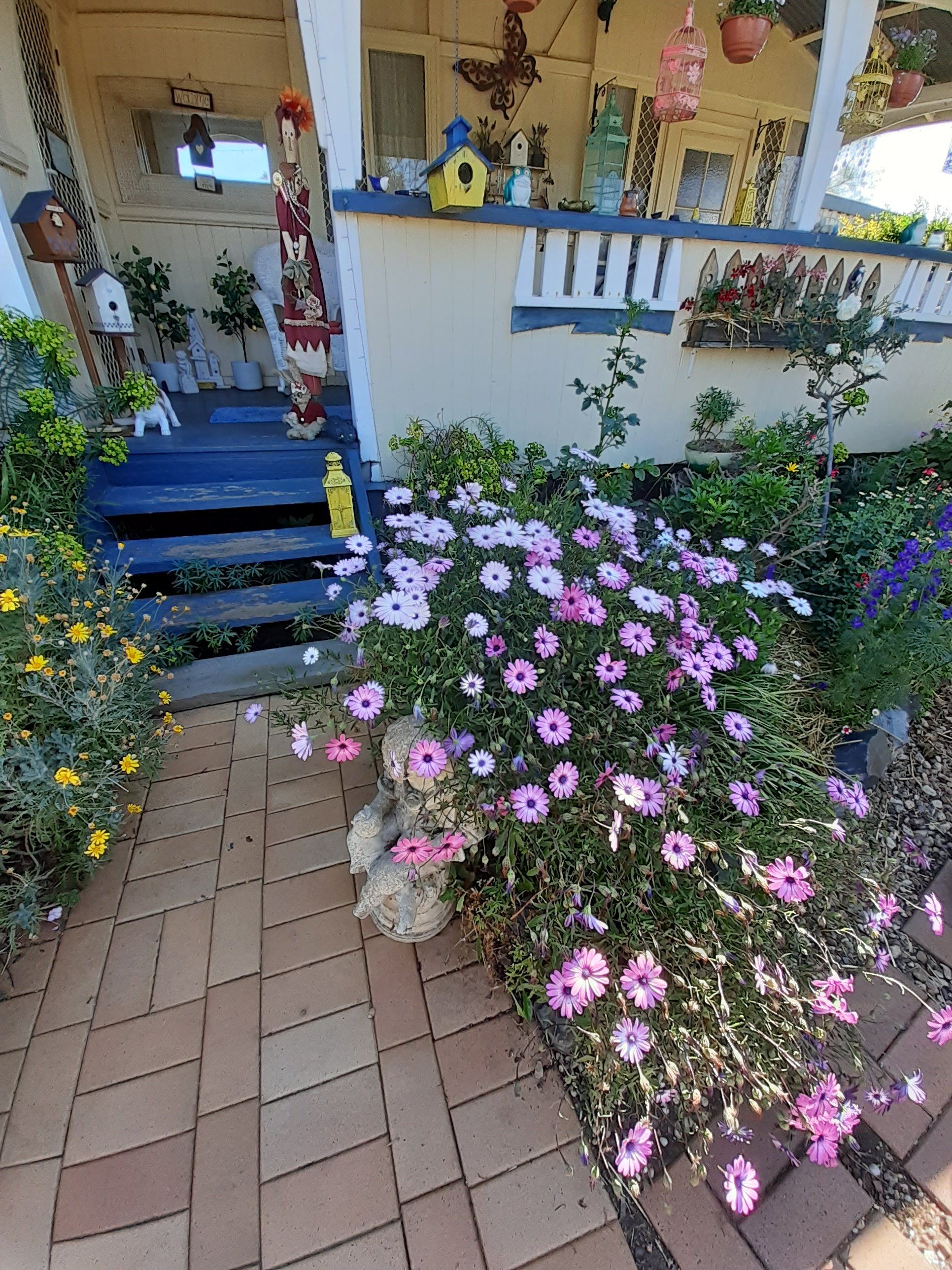 I am renowned for hibernating during the cooler months. Even more so over the past year because of the covid situation….forced into lockdown. Recently I was able to escape the four walls and go on a bus trip for the day to look at beautiful spring gardens. We travelled about 90 minutes west of Brisbane to Spring Bluff and then to Pittsworth. We visited an old railway station, a nursery and some private homes and had lunch at a hotel. I was able to take heaps of photos, some of which I will share with you. Sorry I can’t tell you the names of plants, just enjoy seeing the beautiful colours.